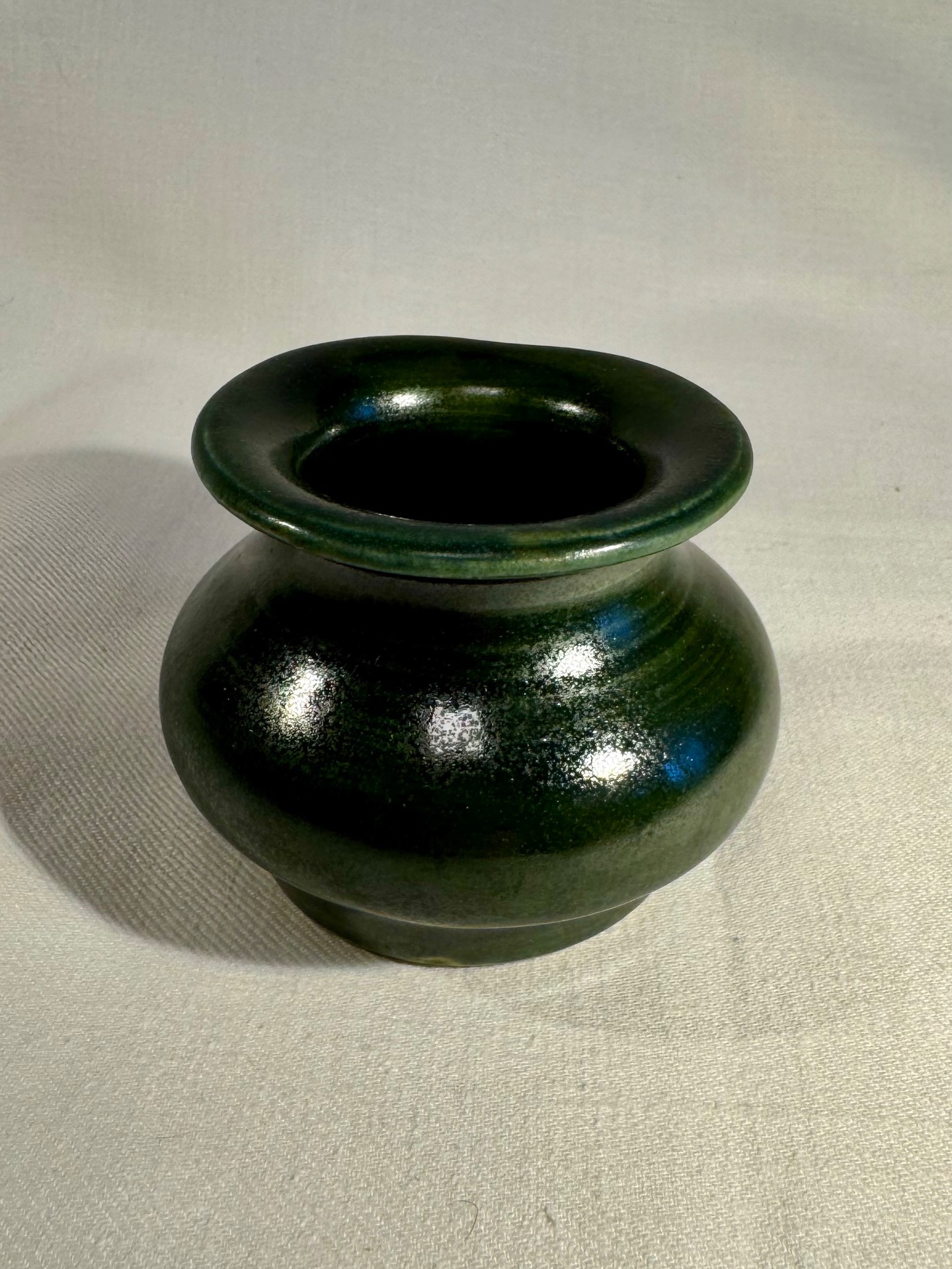 Liten grön vas. 8 cm vid och 6 cm hög.
